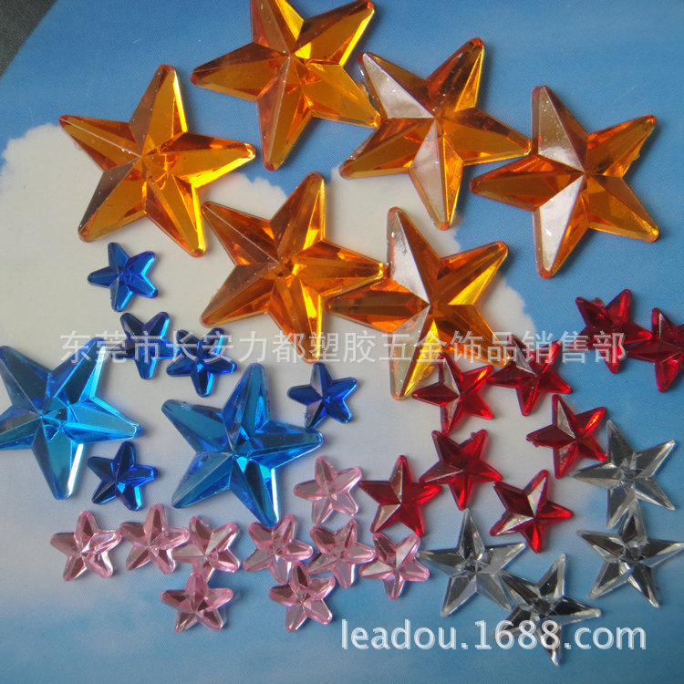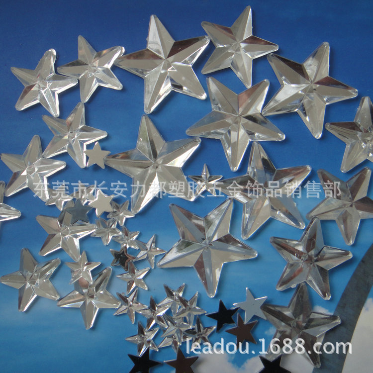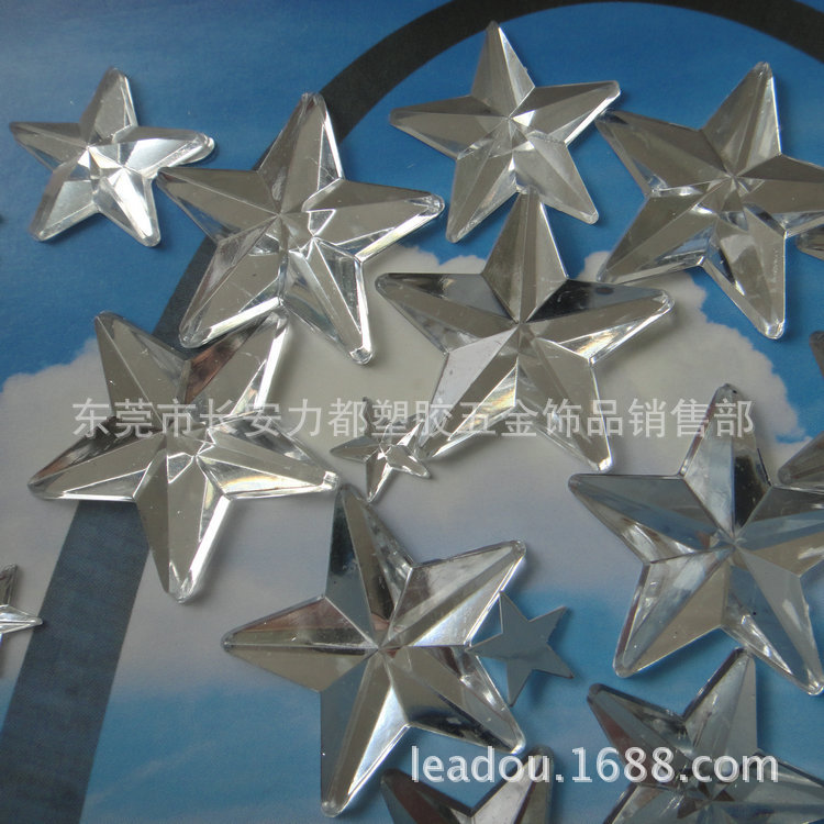 各种规格透明五角星压克力钻五角星钻石亚克力五角星无孔平底钻
